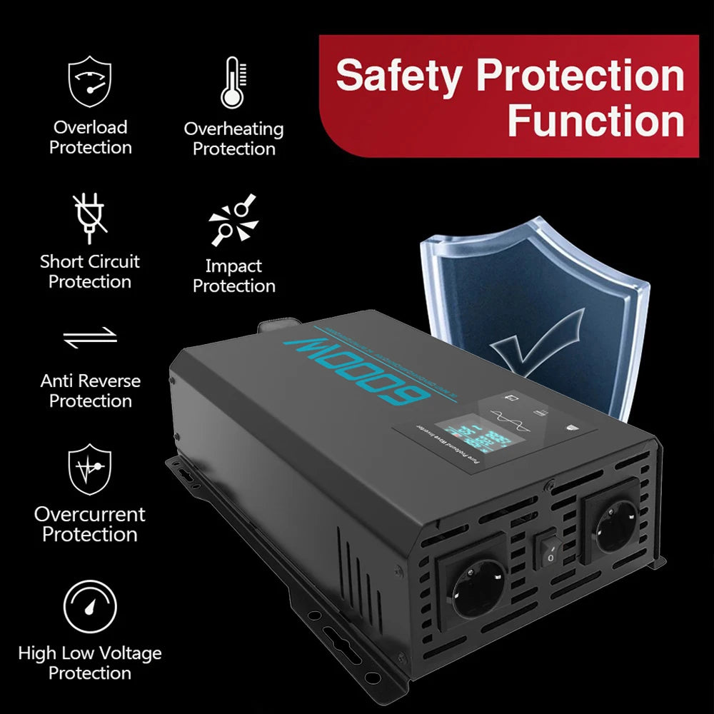 Inversor de Corriente Onda Pura 3000W 6000W Pico | Inversor DC/AC 12V–72V a 220V para RV y Camper