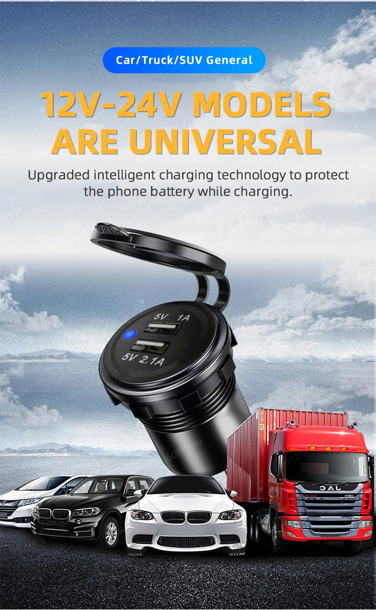 Compatible con sistemas 12V–24V: coche, moto, camper, RV, barco, ATV y más.